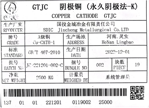 The Shanghai International Energy Exchange (INE) has recently received the application for brand registration from SDIC Jincheng Metallurgical Co.LTD In accordance with rules including the Registration Rules for Deliverable Commodities of Bonded Copper Futures and following the on-site inspection and sample testing, INE determines that “GTJC”-branded Grade A copper cathodes produced by SDIC Jincheng Metallurgical Co.LTD conform to all the specifications of the INE bonded copper futures contract. Accordingly, INE issues the following decisions: