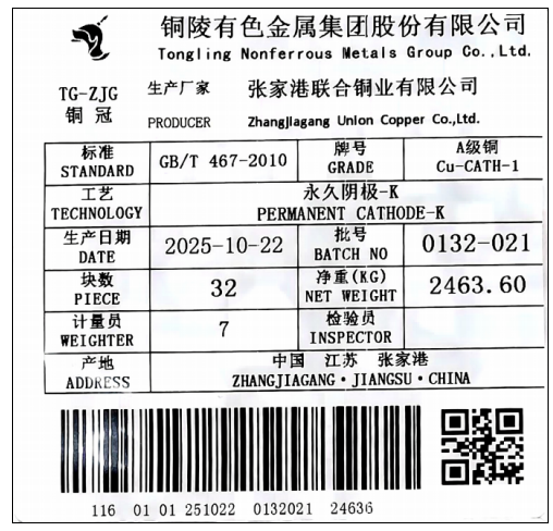 1. INE approves the registration of “TG-ZJG Tongguan”branded Grade A copper cathodes produced by Zhangjiagang Union Copper co.,Ltd. with a registered production capacity of 100,000 mt and subject to standard delivery prices.