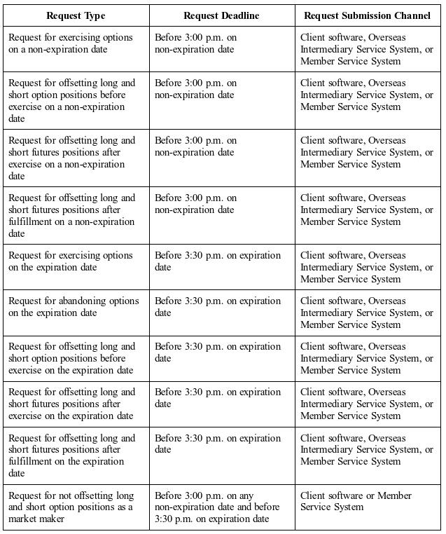 TSR 20 and Boned Copper options are American-style options. Non-Futures Firm Members, Overseas Special Non-Brokerage Participants (OSNBP), and Clients should submit exercise or abandonment requests during the hours and through the channels listed below: