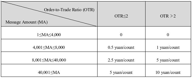Notes: message amount = total number of trading orders such as order placement, order cancellation, and RFQ; OTR= (message amount / number of executed orders)- 1. If the actual number of executed orders is 0, it would be treated as 1 for calculating OTR. The message amount mentioned above includes order placement and cancellation resulting from fill-or-kill (FOK) orders and fill-and kill (FAK) orders.