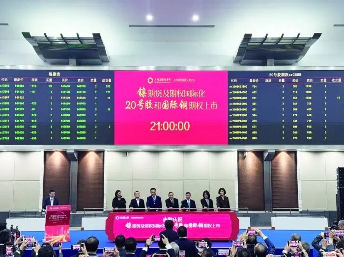 上期所理事长田向阳表示,镍期货及期权品种国际化,20号胶与国际铜期权的顺利上市,是上期所深化高水平对外开放、提升重要大宗商品价格影响力的重要举措。下一步,上期所将持续完善产品矩阵、优化制度规则、强化市场培育、深化双向开放,稳步提升期货市场运行质量与服务实体经济能力,加力加压加快建成世界一流交易所。